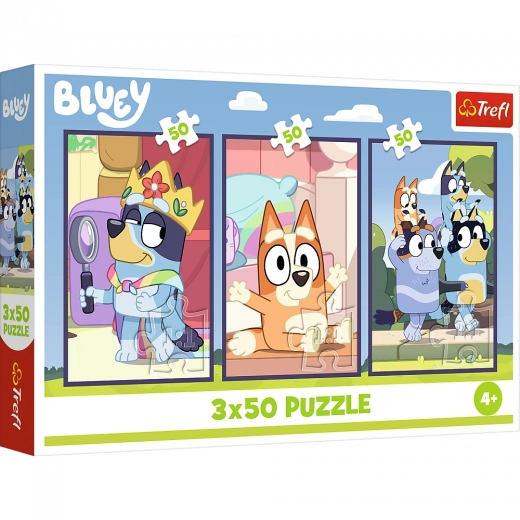 Il set Famiglia Bluey contiene tre incredibili puzzle, ognuno con 50 pezzi. Ogni puzzle presenta i personaggi preferiti del cartone animato Bluey e, una volta completato, crea bellissime immagini di dimensioni 275x180 mm. Questa variante di puzzle è ottima per il gioco di gruppo e favorisce la collaborazione tra i bambini.