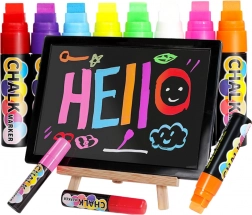 Questo set di 8 pennarelli a gesso offre colori intensi e uniformi con applicazione scorrevole senza sbavature. I pennarelli funzionano perfettamente su lavagne, vetro, ceramica, lavagne LED e altre superfici non porose, dove creano scritte e decorazioni evidenti e durature. L’asciugatura rapida riduce al minimo le sbavature e velocizza il lavoro.