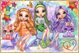 Questi puzzle alla moda faranno felici tutti i fan della serie RAINBOW HIGH. In un’unica confezione trovi due immagini separate da 200 pezzi, per un divertimento assicurato per più sere. Grazie al taglio preciso e ai colori vividi, i pezzi si incastrano alla perfezione e le immagini finali risultano splendide.