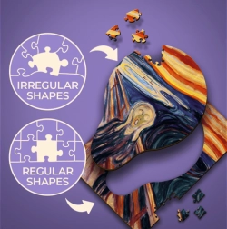 Concediti momenti di relax con gli straordinari puzzle in legno TREFL ispirati ai capolavori della pittura. Questa edizione presenta la celebre opera di EDVARD MUNCH – L’Urlo, che conquisterà sia gli amanti dell’arte sia i puzzleisti più esigenti. Grazie alla lavorazione laser precisa, i pezzi sono robusti, accurati e piacevoli da assemblare.