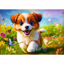Puzzle Allegro cagnolino sono composti da 500 pezzi e raffigurano un adorabile cane. Il puzzle completato misura 480x340 mm.