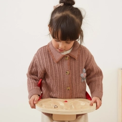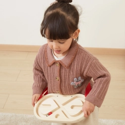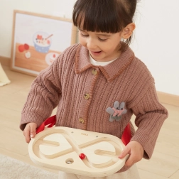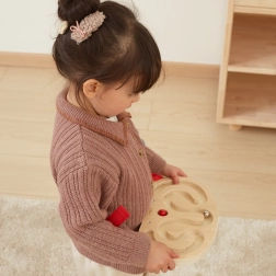 Una biglia leggera in legno e una più pesante in metallo consentono di adattare la difficoltà alle abilità del bambino e aumentare progressivamente la sfida.