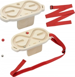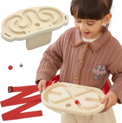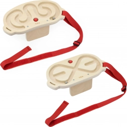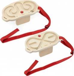 Il set include due labirinti in legno di alta qualità con superficie liscia e due biglie – una più leggera in legno e una più pesante in metallo – per diversi livelli di difficoltà. Grazie alle cinghie regolabili (46–95 cm) è possibile fissare il labirinto a diverse parti del corpo e allenare sia l’equilibrio sia la precisione del movimento.