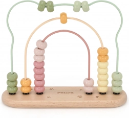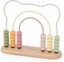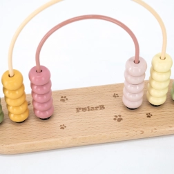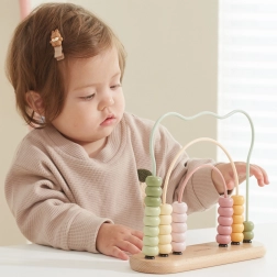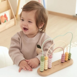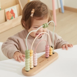 Le perline pastello su percorsi intrecciati motivano i bambini a scoprire i numeri, a classificare e a confrontare le quantità, tutto sotto forma di gioco.