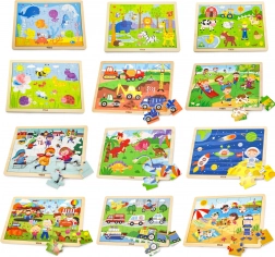 Scopri la gioia di imparare giocando con i puzzle in legno Viga. Il set include 12 puzzle incorniciati da 24 pezzi ciascuno e un pratico supporto in legno. Favorisce la coordinazione mano–occhio, il pensiero logico e la fantasia dei bambini. Colori sicuri, legno resistente e illustrazioni adorabili motivano i bambini a essere pazienti e concentrati.
