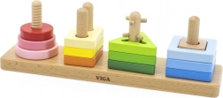 Il classificatore geometrico in legno del marchio Viga è un gioco educativo pensato per insegnare a contare e distinguere forme e colori. Su ognuna delle quattro aste di base bisogna posizionare le forme corrispondenti. Un gioco che a prima vista sembra semplice è reso più impegnativo dal fatto che i blocchi devono essere adattati alle relative sagome. Durante il gioco il bambino sviluppa abilità manuali, coordinazione mano-occhio e pensiero logico. I colori vivaci attirano l’attenzione del bambino e stimolano i suoi sensi. Il classificatore è privo di spigoli vivi e l’uso di vernici atossiche garantisce sicurezza per i bambini e per l’ambiente.