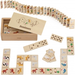 Scopri un gioco divertente ed educativo per bambini: il domino in legno 2in1 di VIGA. Ogni tessera è double-face: da un lato i classici puntini e numeri, dall’altro teneri animali della fattoria. Regole semplici, 28 pezzi in legno di qualità e una robusta scatola in legno per riporli facilmente rendono questo gioco la scelta ideale per sviluppare pensiero logico, calcolo e riconoscimento di pattern nei bambini dai 3 anni.
