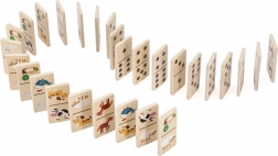 • 28 tessere in legno: dimensione comoda per la mano dei bambini