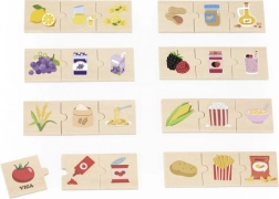 Ogni coppia di tasselli collega una coltura al prodotto finale (es. limone → limonata, mais → popcorn). I bambini acquisiscono naturalmente le relazioni e sviluppano la logica.
