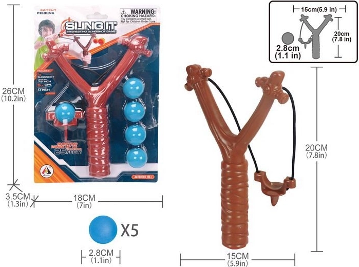 La nostra fionda con cinque palline è una scelta eccellente per bambini e adulti che amano le attività all'aperto. La fionda ha dimensioni compatte di 15x20 cm, che consentono una facile maneggevolezza e portabilità. Le palline con un diametro di 2,8 cm sono perfette per tiri precisi.