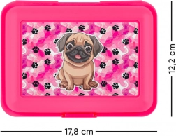 La scatola per snack rosa con design moderno e cane sul coperchio è la scelta ideale per chiunque voglia conservare il proprio cibo in modo sicuro e organizzato. Grazie al divisore centrale puoi conservare separatamente i singoli alimenti, prevenendo che si mescolino durante il trasporto. La scatola è leggera e facilmente trasportabile, rendendola il compagno perfetto per viaggi, scuola o picnic.