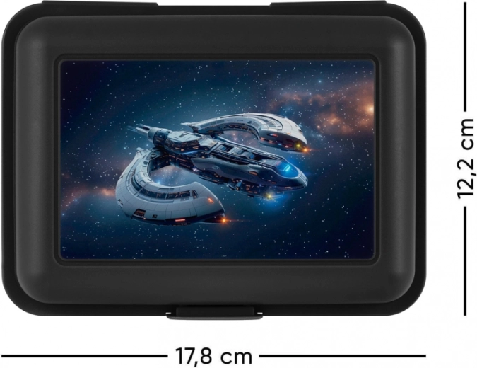 Il box per pranzo con motivo navicella spaziale è qui per tutti gli amanti del cosmo. Questo box nero è non solo elegante, ma anche pratico: