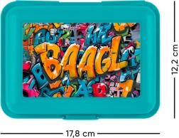Scatola per merenda con un motivo graffiti accattivante e il logo BAAGL, che porta uno stile unico.