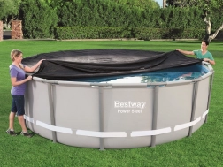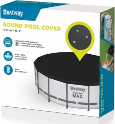 Telo coprente universale Bestway è la protezione perfetta per la tua piscina con struttura di diametro 488 cm o tipo Hydrium 460 cm. Questo telo coprente protegge la piscina da insetti, uccelli, foglie e pioggia leggera e allo stesso tempo aggiunge isolamento termico.
