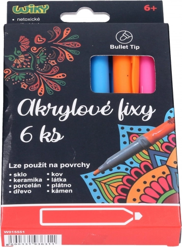 Set di pennarelli acrilici in 6 colori per diverse superfici. Ideali per vetro, ceramica, porcellana e altro.