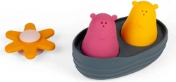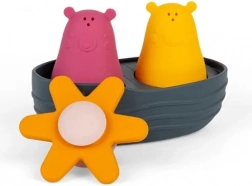Divertiti con questa vivace serie di giocattoli acquatici. Il bambino può immergersi in avventure con una barchetta e due orsetti che spruzzano acqua. Altri divertimenti sono forniti da una ruota a fiore rotante.