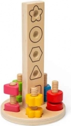 Questo ingegnoso giocattolo educativo combina divertimento e apprendimento. I bambini possono avvitare le forme colorate sul piolo, ordinarle secondo i contorni sulla base ed esercitare il pensiero logico e la percezione spaziale. La robusta struttura in legno e le vernici sicure garantiscono lunga durata e gioco spensierato.