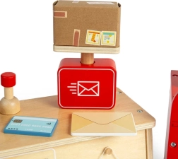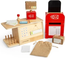 Scoprite tutto ciò che accade in un ufficio postale con questo affascinante set per bambini dai 3 anni in su. Il set include una cassetta delle lettere, cassa, bilancia, sacco per pacchi, pacchi, lettere e molto altro, tutto ciò che i piccoli postini hanno bisogno per il loro lavoro. Ogni pezzo è realizzato con legno certificato FSC® sostenibile e dipinto con colori atossici.