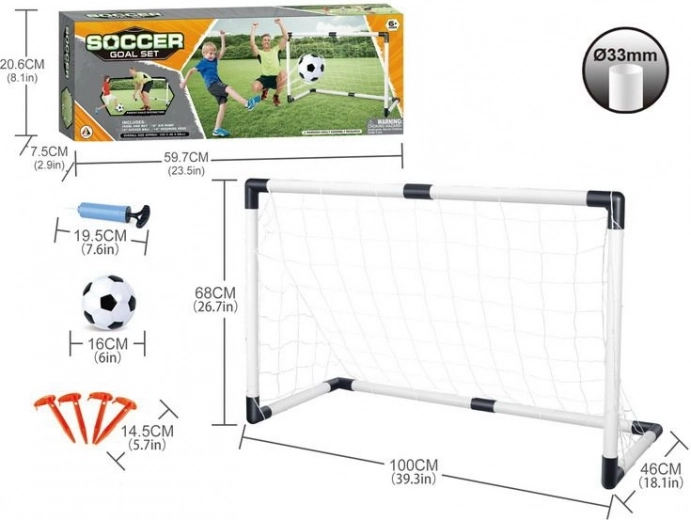 Set da calcio per piccoli e grandi giocatori, che include una porta pieghevole e un pallone. Un accessorio perfetto per tutti gli appassionati di calcio, ideale per giocare in giardino o al parco.