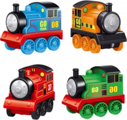 Questo set contiene quattro locomotive di colore diverso, permettendo ai bambini di creare scenari di gioco, costruire percorsi e giocare a fare i macchinisti. Il giocattolo è realizzato in plastica di alta qualità, completamente sicura per i bambini. Le locomotive hanno dimensioni compatte, facilitando la presa e lo spostamento nelle mani dei bambini.