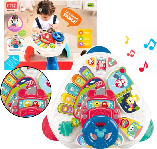Tavolo educativo interattivo offre ai bambini l'opportunità di sviluppare abilità manuali, cognitive e musicali. Include una tastiera con pulsanti colorati che apre il mondo delle prime melodie e suoni.