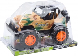 L'auto fuoristrada per bambini in stile mimetico beige offre tanto divertimento: ha telaio rialzato, grandi ruote con battistrada profondo e struttura in plastica resistente per giocare in casa e all'aperto. Dimensioni del veicolo 25 × 16,5 × 15,5 cm.