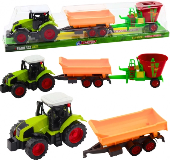 - Gioco realistico – trattore, rimorchio ribaltabile e carro miscelatore per autentiche attività di fattoria.