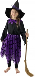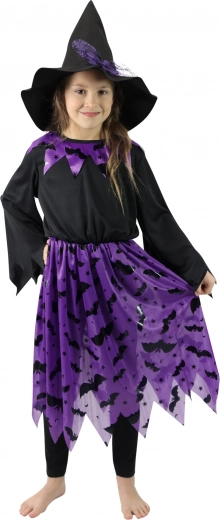 Stai cercando il costume perfetto per la tua piccola strega? Questo costume da strega per bambini porta magia e fantasia in ogni gioco. Il costume comprende un vestito e un cappello a punta con fiocco, tutto in un design nero-viola accattivante decorato con motivi di pipistrelli. Destinato a ragazze di taglia M, vale a dire per un'età compresa tra i 6 e gli 8 anni (117-128 cm). Il costume è leggero e confortevole, permettendo libertà di movimento.