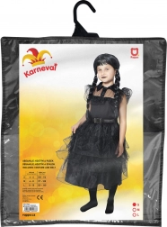 Aggiungi un tocco di mistero a carnevale e Halloween con questo costume per bambina: abito gotico nero con romantiche balze, cintura con fibbia e un elegante colletto. Ideale per le appassionate dello stile dark, in taglia S (4–6 anni) e per un'altezza di 105–116 cm. La parrucca non è inclusa.