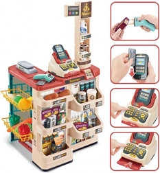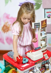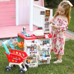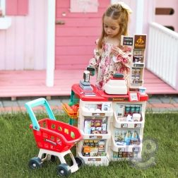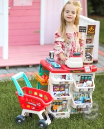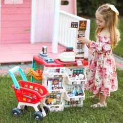 supermercato per bambini con carrello della spesa, cassa, bilancia e scanner WOOPIE (48 accessori)