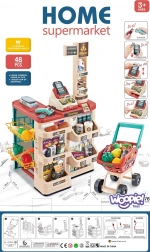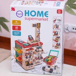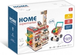 Inclusi un carrello stabile e 48 accessori: frutta, verdura, bevande, latticini, denaro di carta e carta di pagamento: tutto il necessario per una spesa completa.