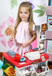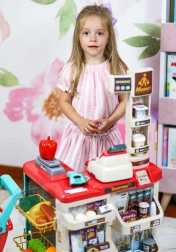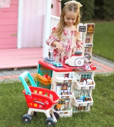 L’organizzazione studiata con scaffali ed etichette prezzo favorisce l’apprendimento del valore del denaro, il calcolo e le basi dell’educazione finanziaria. Gli alimenti realistici (frutta, verdura, bevande, latticini, ecc.) stimolano l’immaginazione e la conversazione, mentre la robusta lavorazione in plastica si adatta a ogni cameretta.