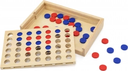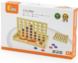 Il gioco logico in legno 4 in fila del marchio Viga è ideale per bambini e adulti che amano le sfide strategiche. L'obiettivo è posizionare quattro gettoni in un'unica linea – orizzontale, verticale oppure obliqua. Questo gioco da tavolo classico e compatto offre divertimento per tutta la famiglia, sviluppa il pensiero logico e allena strategia e pazienza.