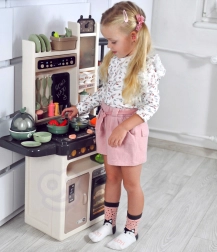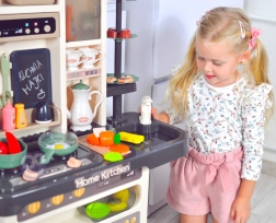 La cucina per bambini Woopie Home Kitchen trasforma il gioco del piccolo chef in un’esperienza realistica. Attivando la manopola girevole si attiva il fornello con luce, suono di cottura e vapore sicuro; la cappa offre melodie e illuminazione con volume regolabile e il rubinetto con circuito chiuso permette ai bambini di “lavare i piatti” senza rovesci.