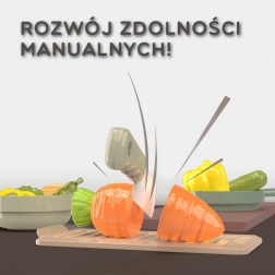 - Sviluppo di fantasia e motricità fine grazie al taglio degli alimenti con velcro e alle attività di ruolo.