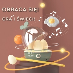 La cappa interattiva con luce e melodie, il cuociuova con LED e suono e la lavagna per gessetti sostengono scenette culinarie creative.