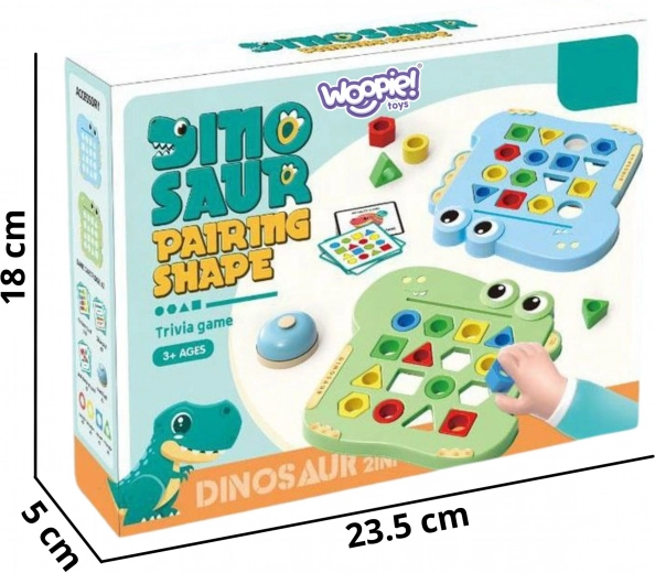 Gioco divertente ed educativo per bambini dai 3 anni che unisce il classificare e abbinare le forme a un tenero tema dinosauro. Offre modalità singola e sfida per due giocatori, sviluppa motricità fine, coordinazione occhio–mano, concentrazione e riconoscimento di colori e forme. La qualità costruttiva e i colori vivaci garantiscono tanto divertimento e rafforzano il rapporto genitore–bambino.
