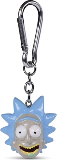 Elegante portachiavi 3D con tema Rick e Morty, ideale per i fan di questa popolare serie. Il moschettone in metallo garantisce un facile aggancio.