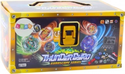 Il set Thunder Gyro è un gioco dinamico per piccoli e grandi appassionati di trottole. I lanciatori spingono i dischi nell’arena ad alta velocità, dove competono per vedere quale mantiene la rotazione più a lungo. Puoi giocare da solo e allenare la precisione e la tecnica di lancio, oppure organizzare un avvincente torneo con gli amici.