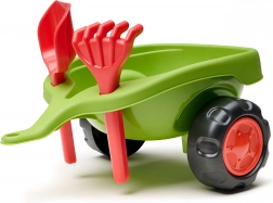 Trasportate giocattoli, sabbia o piccoli carichi. Il rimorchio si aggancia e sgancia facilmente, così il gioco non stanca mai.