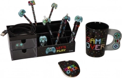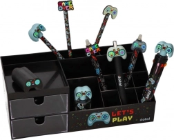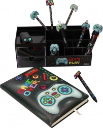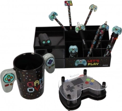 La grafica alla moda con gamepad e la scritta LET’S PLAY completa il setup da gioco e la scrivania degli studenti, donando un carattere unico.