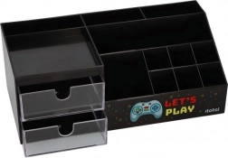 Un pratico organizer da tavolo che aiuta a domare il caos e ad avere tutto a portata di mano: dagli articoli da scrittura ai cavi USB fino ai piccoli accessori da gaming. I due cassetti trasparenti permettono un controllo immediato del contenuto, mentre i vani superiori suddivisi mantengono gli oggetti ben separati e ordinati.
