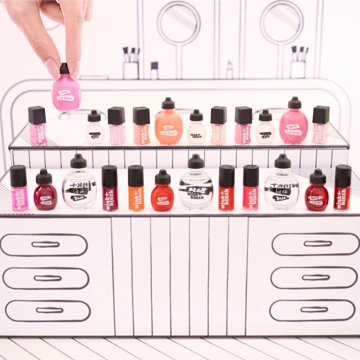 Miscela, timbra e applica: i dettagli realistici dei mini prodotti offrono un gioco creativo e divertente per tutti gli appassionati di cosmetica.