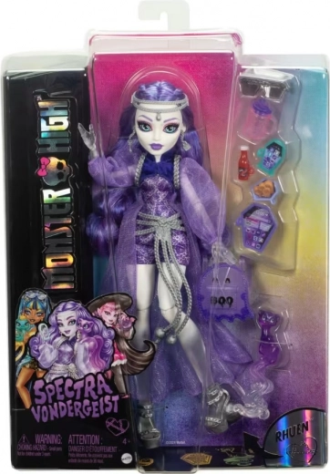 La bambola Spectra Vondergeist in un vivace viola rappresenta uno stile di moda spaventosamente elegante che piacerà a ogni bambino. È dotata di accessori che incoraggiano il gioco creativo: