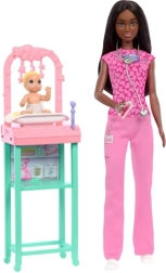 Diventa una dottoressa pediatrica con Barbie e la sua piccola paziente, con elementi ispirati alla professione medica!