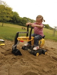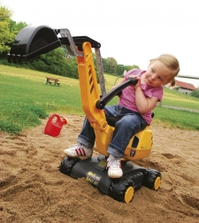 I bambini possono ruotare liberamente attorno all’asse verticale e raccogliere e spostare materiale in tutte le direzioni – come in un vero cantiere.