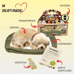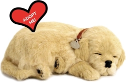 Adotta un cucciolo di Golden Retriever che respira è un compagno magico, capace di calmare e divertire. Il cagnolino addormentato, con collare e dettagli realistici, sembra vivo e il delicato “sollevarsi del pancino” durante la respirazione è naturale e dolce. È incluso anche un comodo lettino, così il cucciolo ha sempre il suo angolino sicuro.