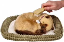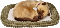 Gattino siamese che respira – peluche realistico su cuccia