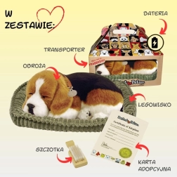 Il cucciolo di beagle che respira Perfect Petzzz è un peluche progettato per imitare nel modo più realistico possibile un cagnolino addormentato. Si alza e si abbassa dolcemente come se respirasse e, grazie ai colori realistici del manto e al morbido lettino, diventerà un accessorio amato sia nella cameretta che in salotto.