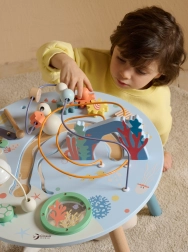 Le caratteristiche del tavolino includono:- 3 cinquine motorie - labirinti